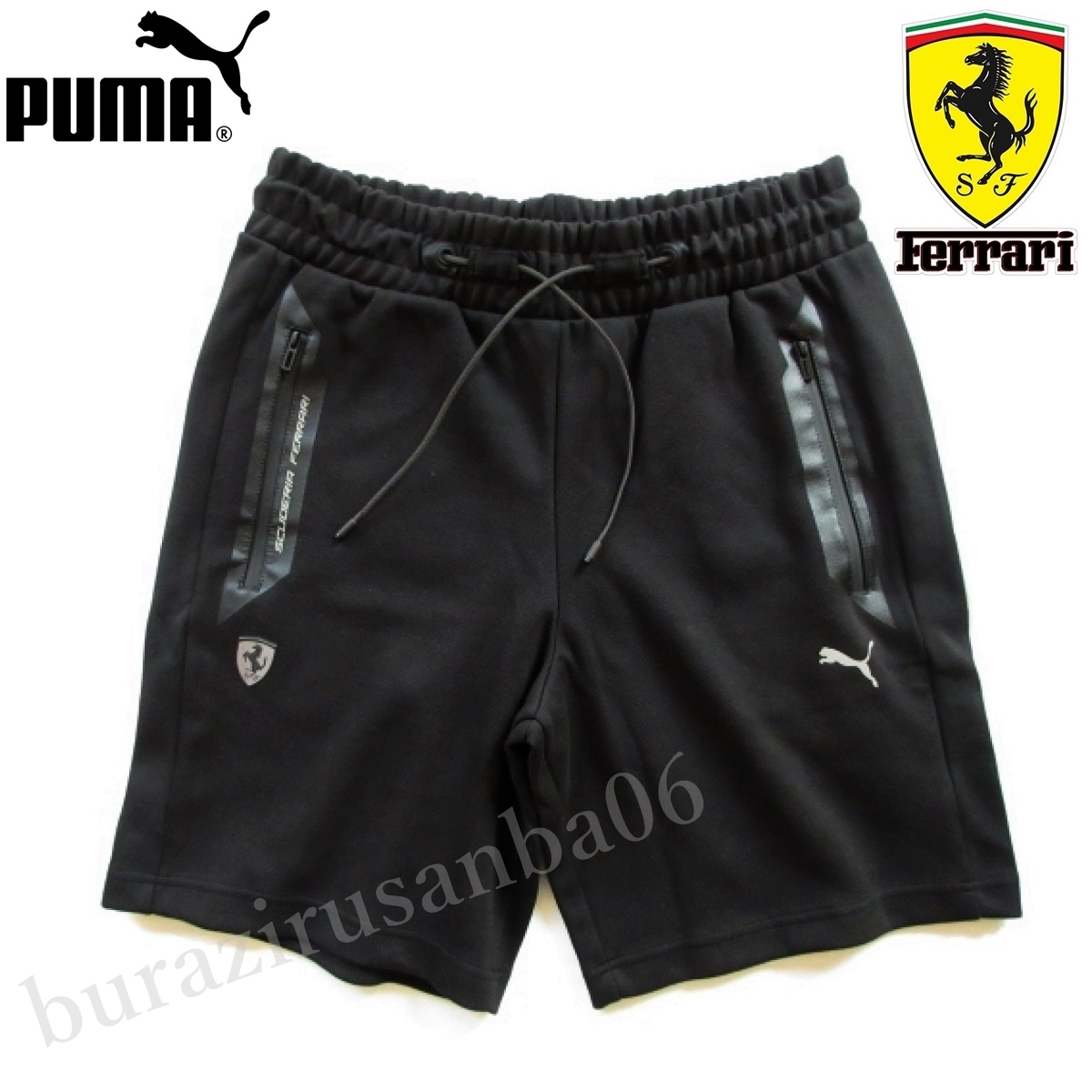 > US/S 日本M相当◆未使用 定価8,250円 PUMA FERRARI プーマ×フェラーリ コラボ スウェット ハーフパンツ メンズ ブラック 599876 黒