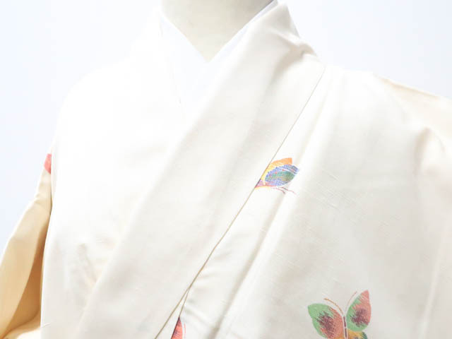 - 《京都一輝堂》【着物】紬 蝶文 しつけ付 身丈約160cm 裄丈約63cm 25z05-2393