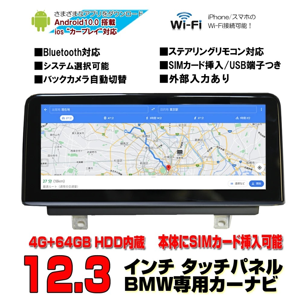 > BMW専用3シリーズ3Series F25 F30 E60 E90Androidカーナビ4G+64G 12.3インチタッチパネル X3 NBT CIC機能と配線取り付けサポート