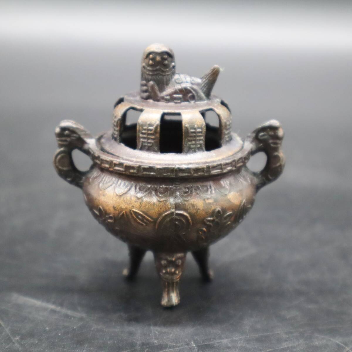 - ∵ |アンティーク 香炉 銅製 ブロンズ| 獅子 三本足|お香立て アンティーク 骨董 古美術 ヴィンテージ■P3818