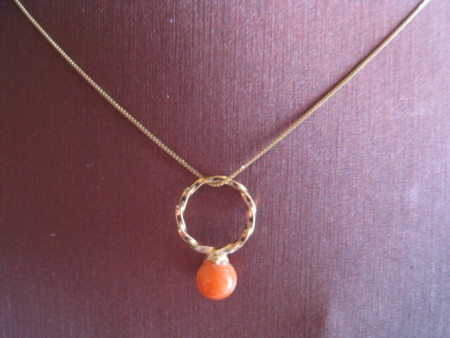 - [SAMU]綺麗!!天然ミニ珊瑚 k10金イエローゴールドペンダントネックレス 美品!