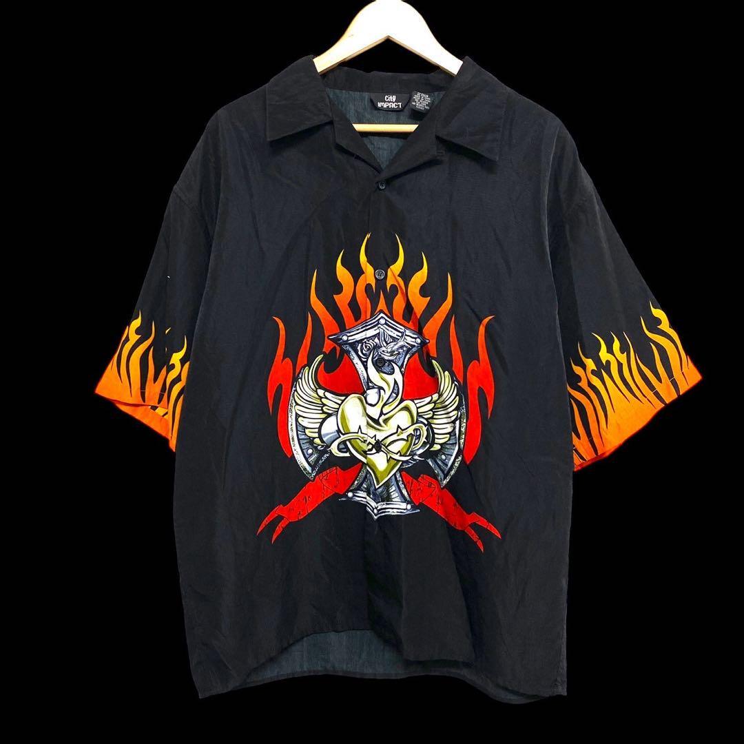 - US古着 city impact アロハシャツ ファイヤーパターン L