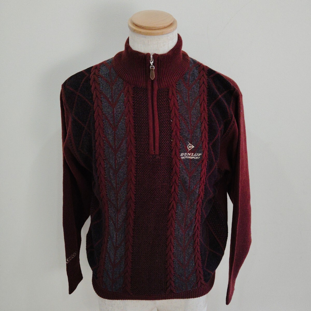 - 1001/M/DUNLOP メンズ ニット ハーフジップ ハイネック ワインレッド