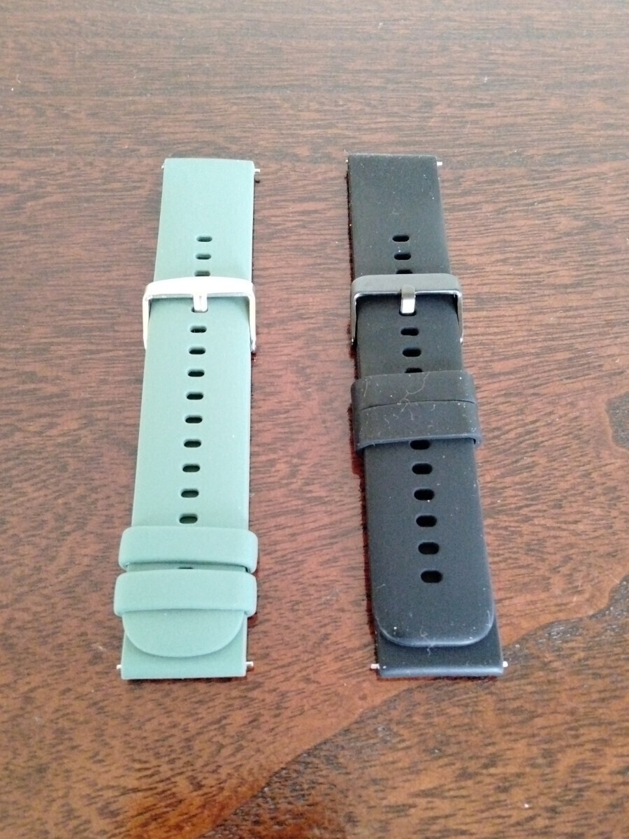- ◆☆時計ベルト/ラバーベルト(幅22mm ウレタン製)☆◆オリーブ【新品】、黒【中古】 計2本セット☆