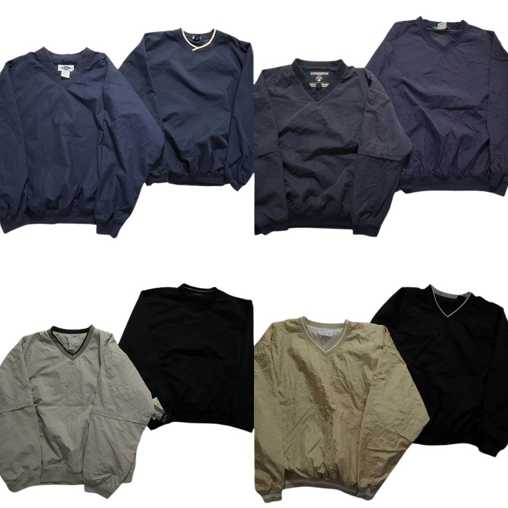 > 古着卸 まとめ売り 無地 ナイロンプルオーバー ジャケット 8枚セット (メンズ XL ) デッドストック ブラック 中古 古着 NC1468