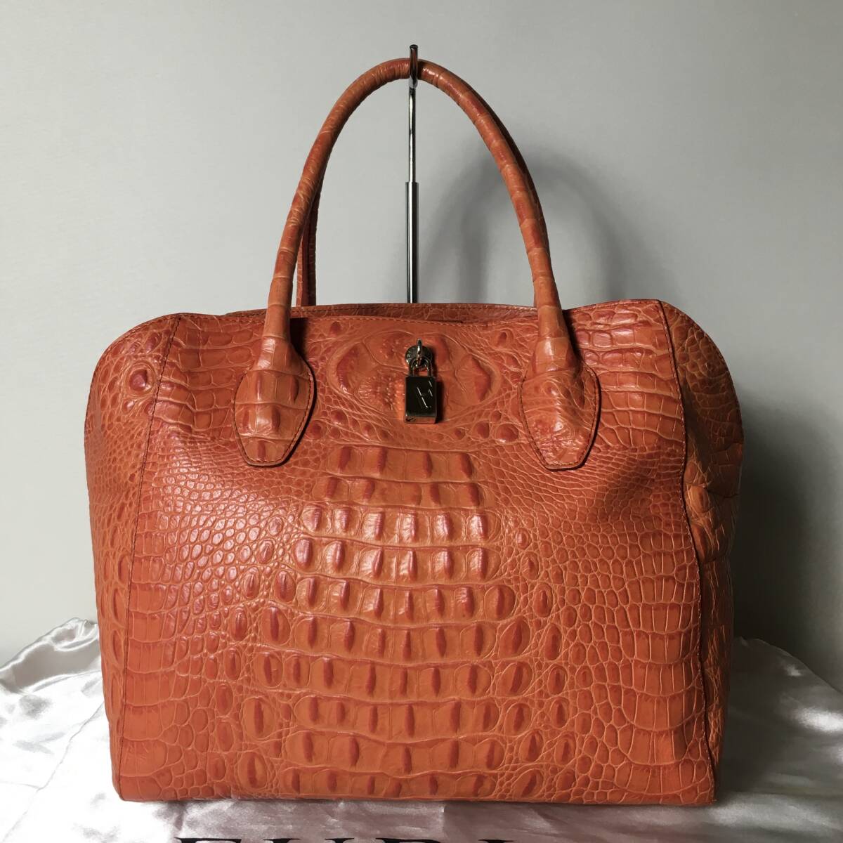 > 79B147|美品|フルラ ハンドバッグ レザー オレンジ クロコ型押し
