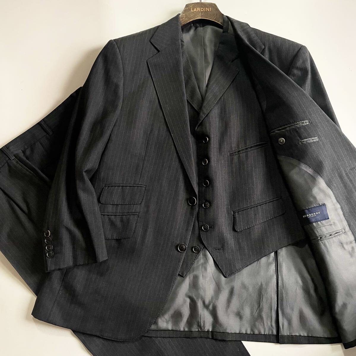 - 【人気のスリーピース】BURBERRY LONDON バーバリーロンドン ウール チャコール 3ピーススーツ ジャケット&ジレ&パンツ BB5 L-XL相当