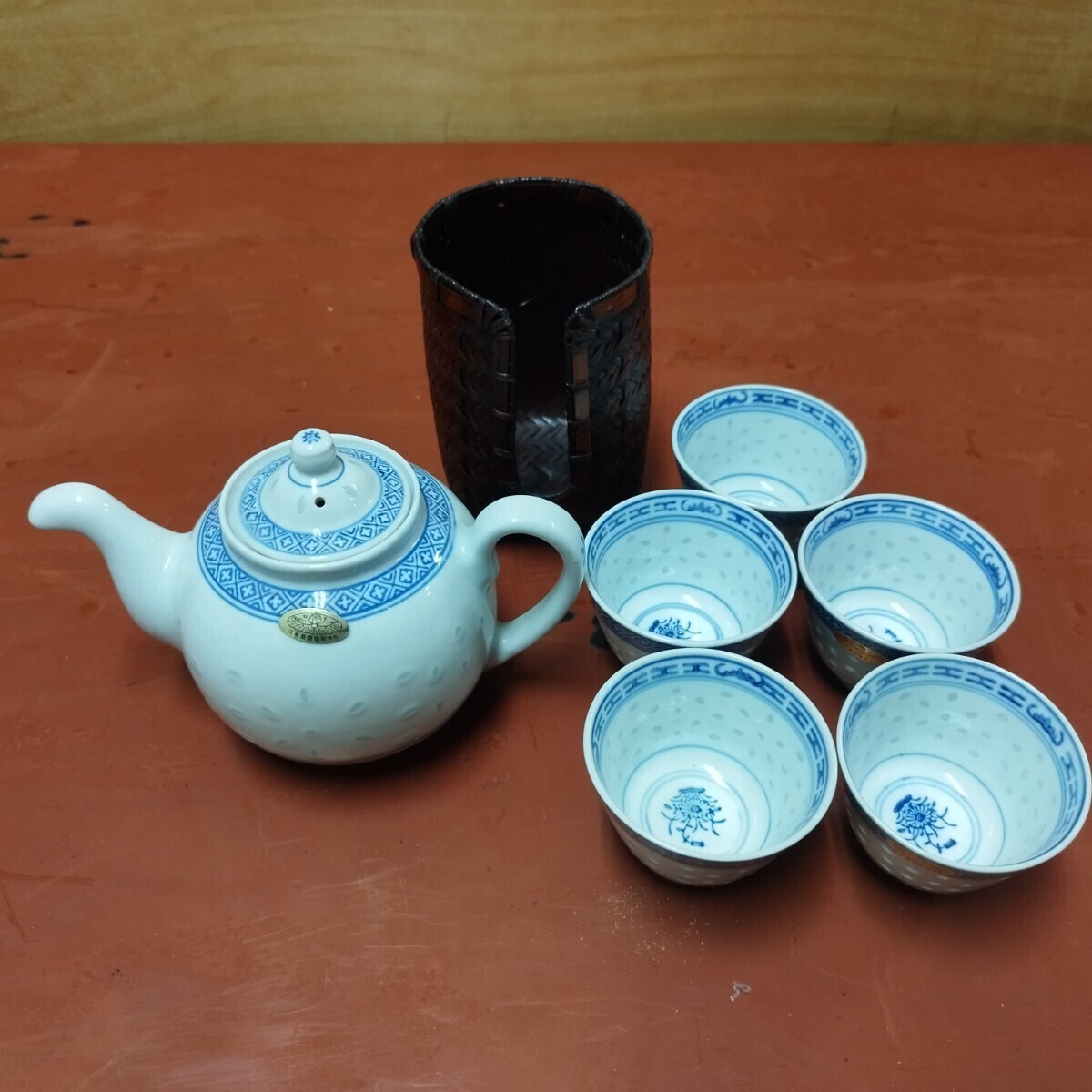 - 戸05d ホタル透し 透かし 中国茶器 茶器セット 湯呑 急須 中国 景徳鎮製 中国景徳鎮 まとめて 蛍焼き ホタル 急須 湯呑 ティーカップ