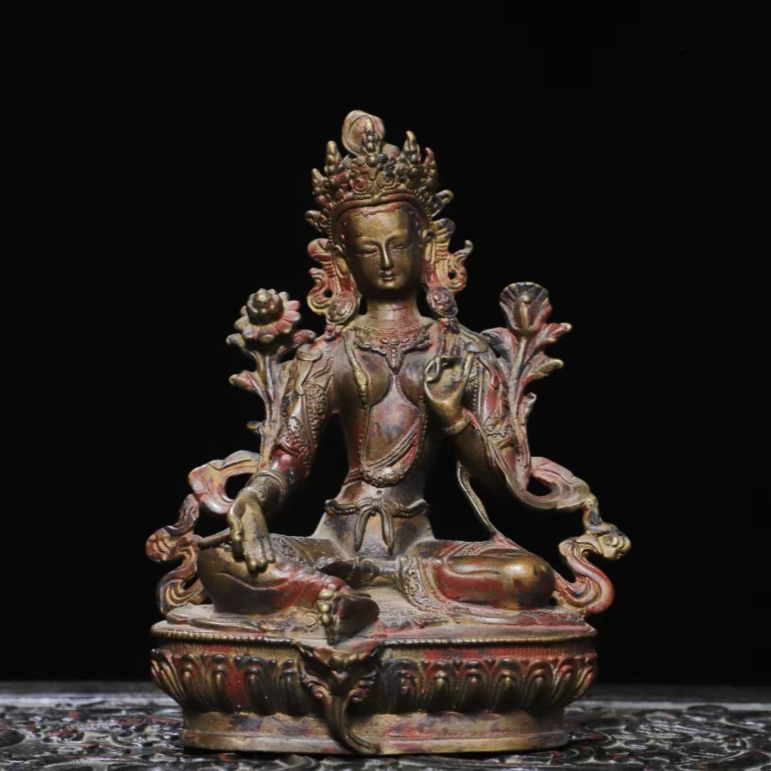 - 旧蔵 清時代 古銅彫 緑度母 佛像 仏像 古擺件 古置物 中国古玩 骨董品 時代物 稀少唐物