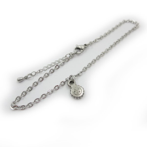- ステンレスチェーンアンクレット平小豆2.4mm ミニスマイル 太陽チャーム付き 27cm(23cm+4cmアジャスター) FN202