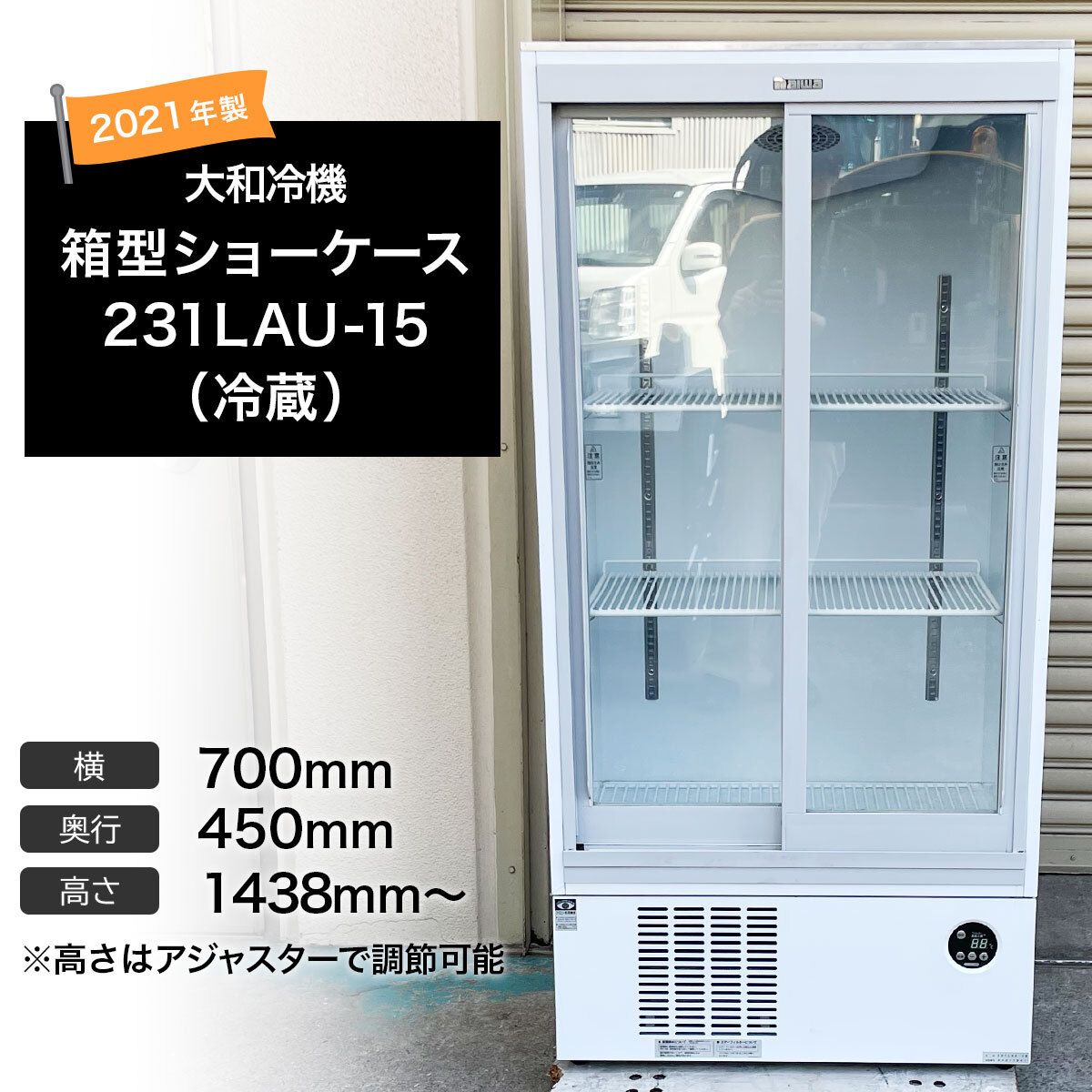 - 大和冷機 箱型ショーケース 231LAU-15/冷蔵/2021年製/3段/可動棚/2枚扉/W700D450H1438mm〜/単相100V/236L/業務用/白/DAIWA/ダイワ/AA551