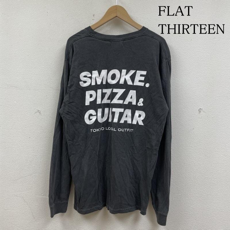> 古着 FLAT THIRTEEN SMOKE PIZZA GUITAR ロンT 長袖 Tシャツ クルーネック ロゴ プリント L