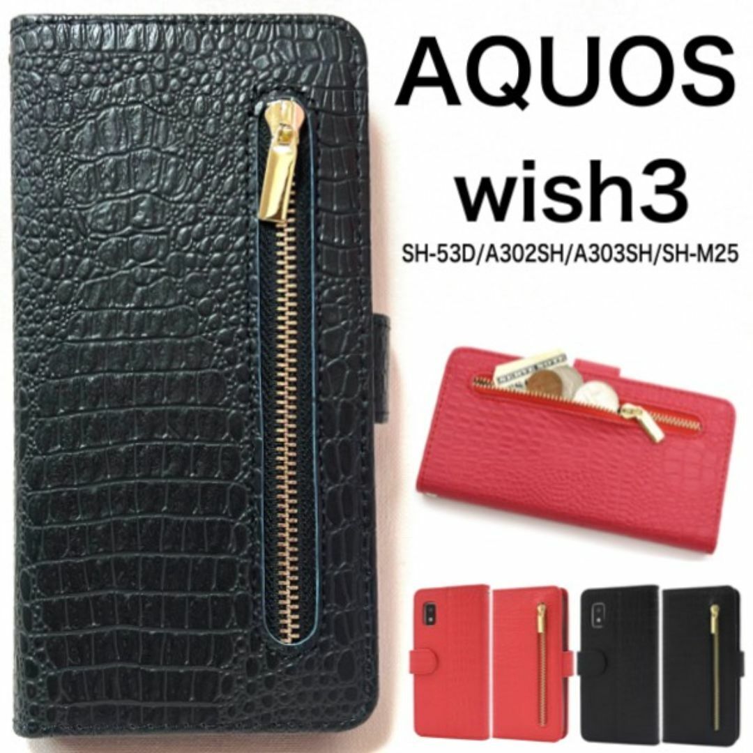 > AQUOS wish3 SH-53D/A302SH ファスナデザイン手帳型ケース/アクオススマホケース