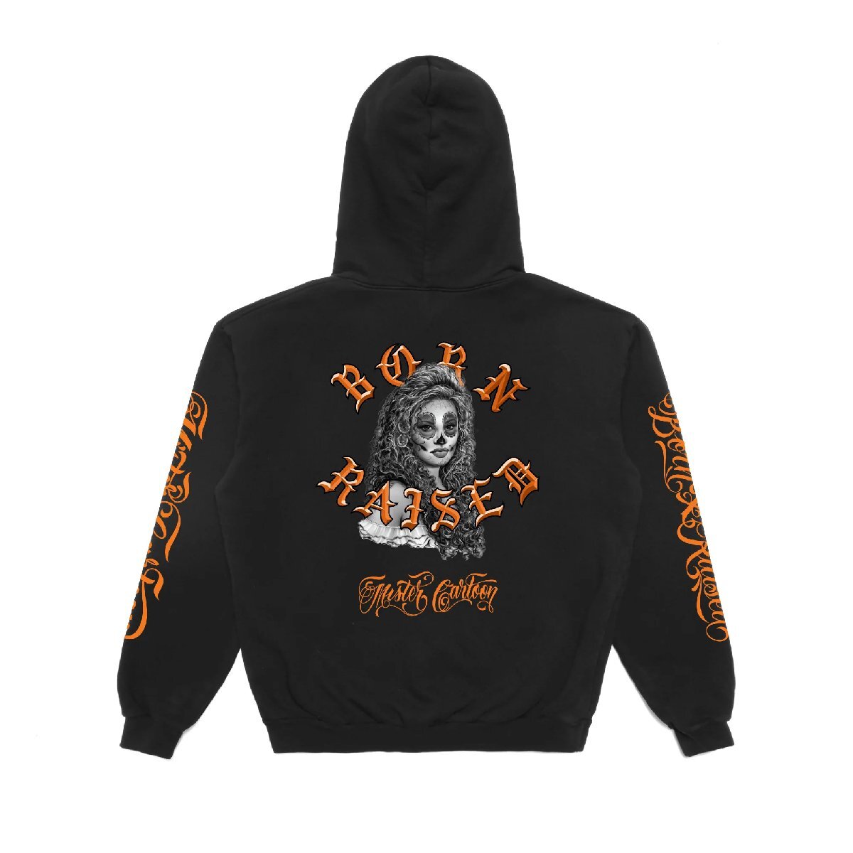 > MISTER CARTOON BORN RAISED MUERTA HOODIE BLACK L ミスターカートゥーン ボーンアンドレイズド ムエルタ フーディー パーカー ブラック