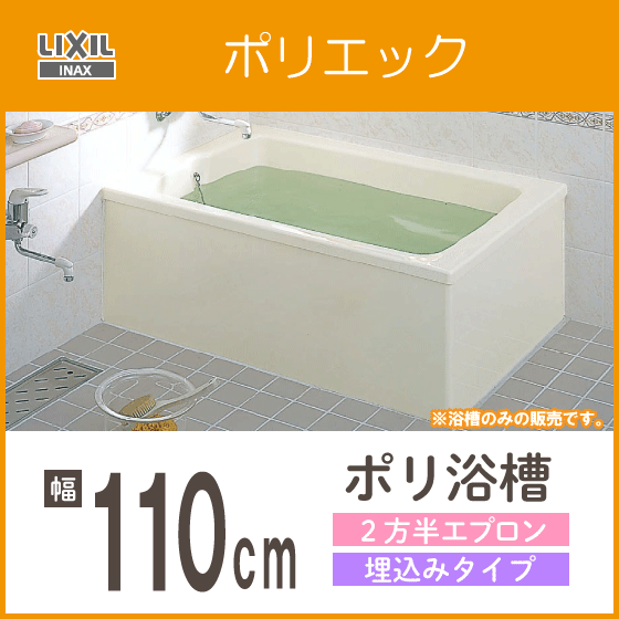 - ポリバス ポリ浴槽 ポリエック FRP浴槽 幅110cm 2方半エプロン 埋込タイプ PB-1111BL,PB-1111BR リクシル イナックス LIXIL INAX