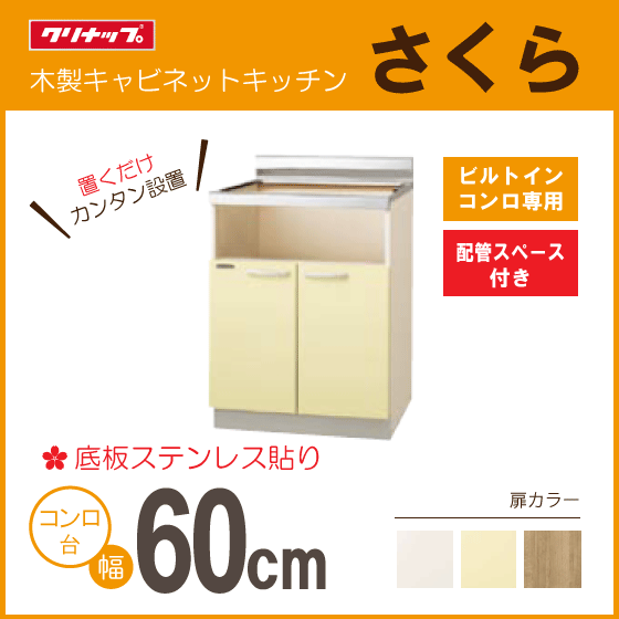 > ビルトインコンロキャビネット(配管スペース付き) さくら クリナップ 60cm TAT-60KHG TAY-60KHG T4B-60KHG 600mm★
