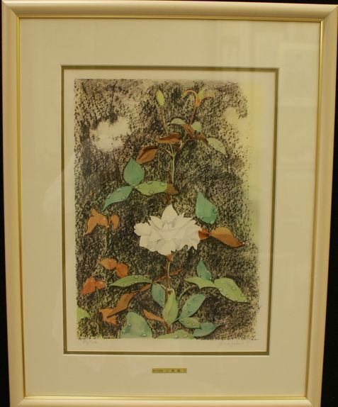 - 〈181〉山崎富三 作 「秋雨のバラ」(リトグラフ 73/100)