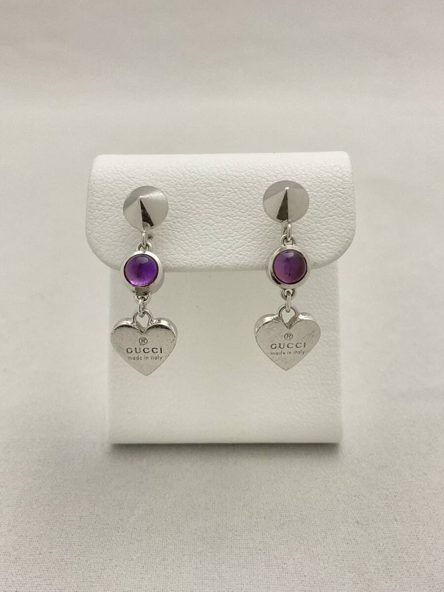 - GUCCI グッチ ロゴハート アメジスト ピアス シルバー アクセサリー 925【B068561】