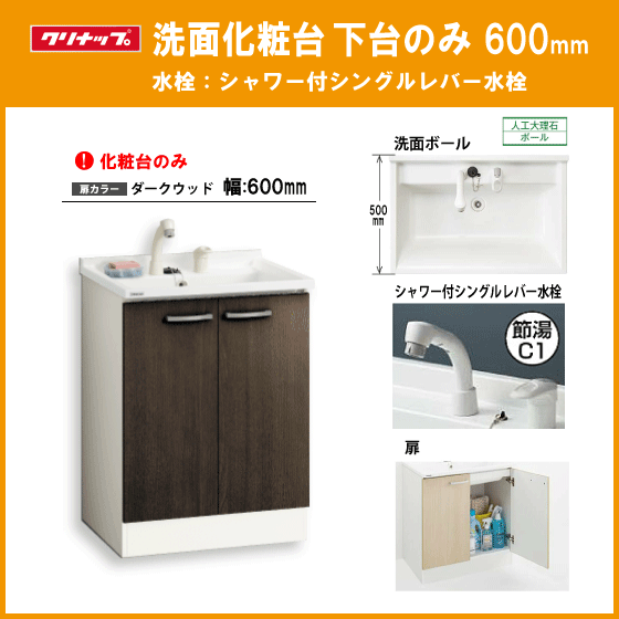- 洗面化粧台 下台のみ(ミラー部なし) シングルシャワー水栓 幅:600mm BGAL60TNTVW クリナップ BGAシリーズ