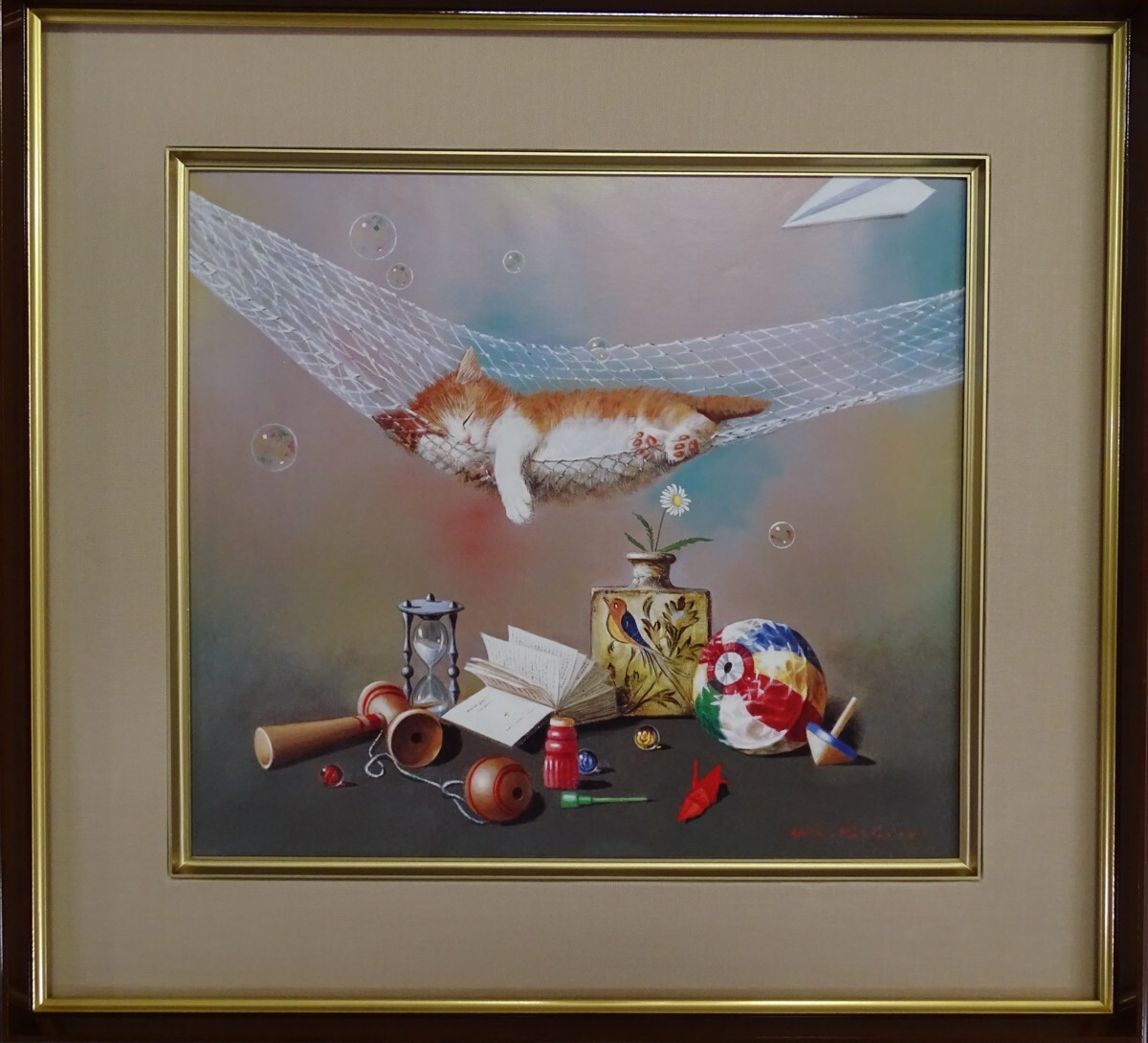 - ・作者名: ・八代 亜紀・ ・画題: ・ハンモックと猫 ・技法: ・油彩画(複製)