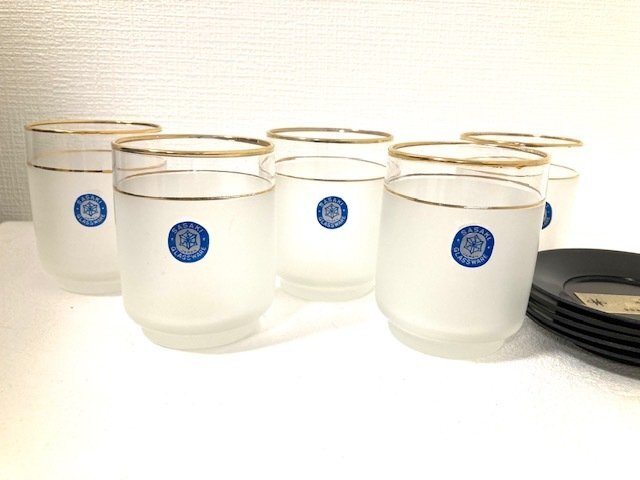 > ★未使用★ 佐々木ガラス SASAKI GLASS WARE コップ 茶托付き 茶器 5客セット 冷茶用 来客 おもてなしにも