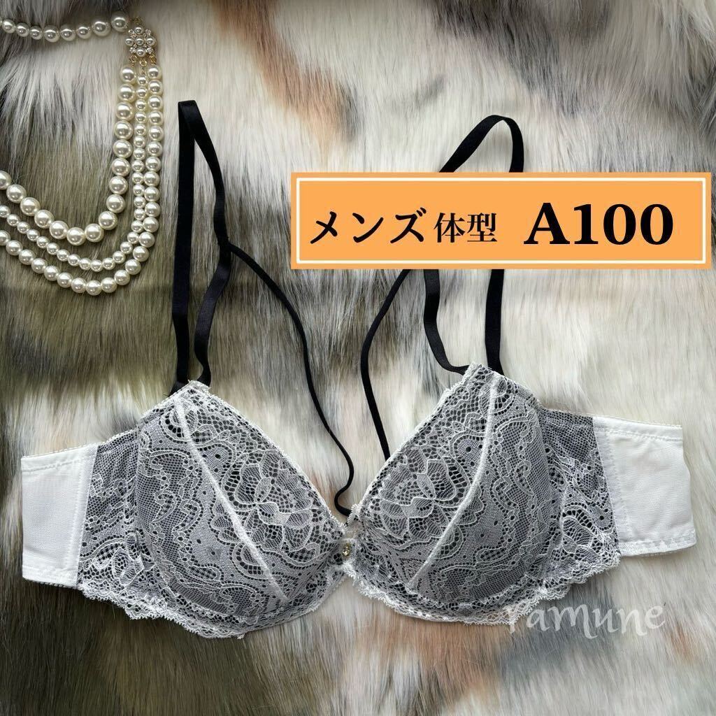 - 【メンズ A100 オフ白】新品 男性用ブラジャー メンズ体型 コード使い 取り外せるパッド付き メンズブラ 下着 アンダー大きめ 男性向け