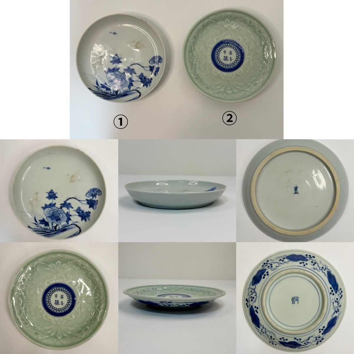 - X-中国古美術 時代物 染付 青磁 飾皿 皿 茶道具 在銘 y碧玉 乾 2点セット 唐物 陶磁器 中国古玩 骨董品