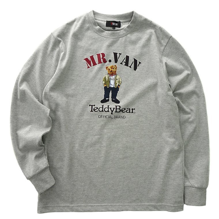 - 新品 ミスターヴァン テディベア 綿混 プリント 長袖 Tシャツ M 灰 【TDV1433132_97_M】MR.VAN Teddy Bear 2023秋冬 コラボ 限定 カットソ