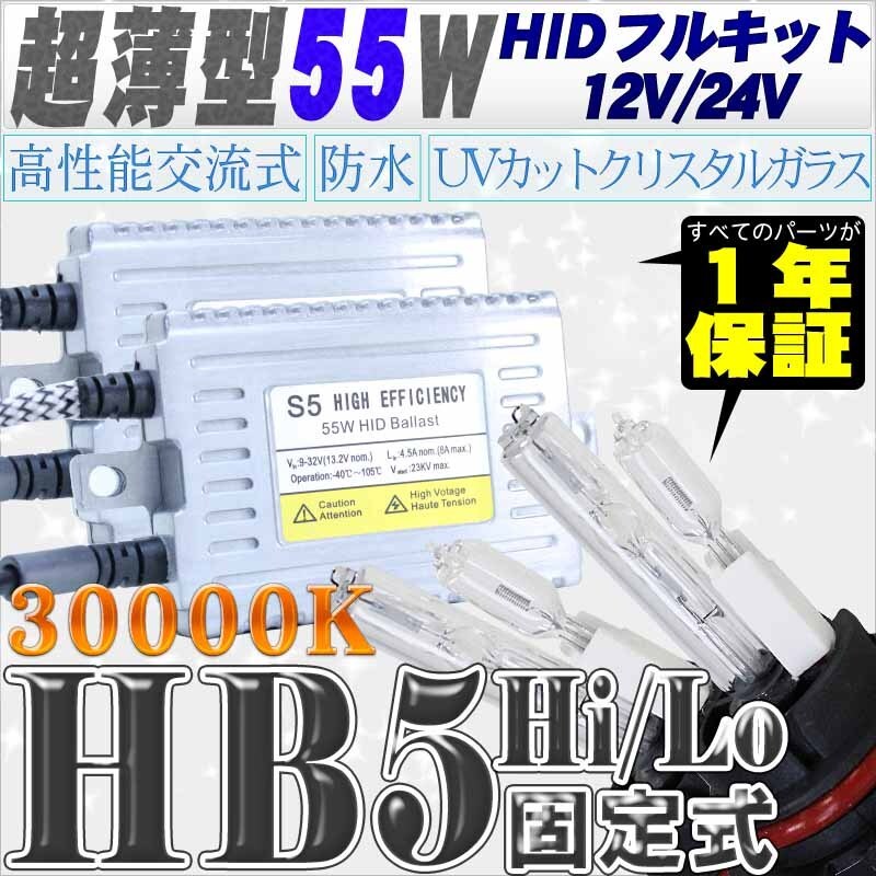 > 高性能 薄型HIDキット 55W HB5 Hi/Lo 固定式 30000K 12V 【交流式バラスト&クリスタルガラスバーナー】