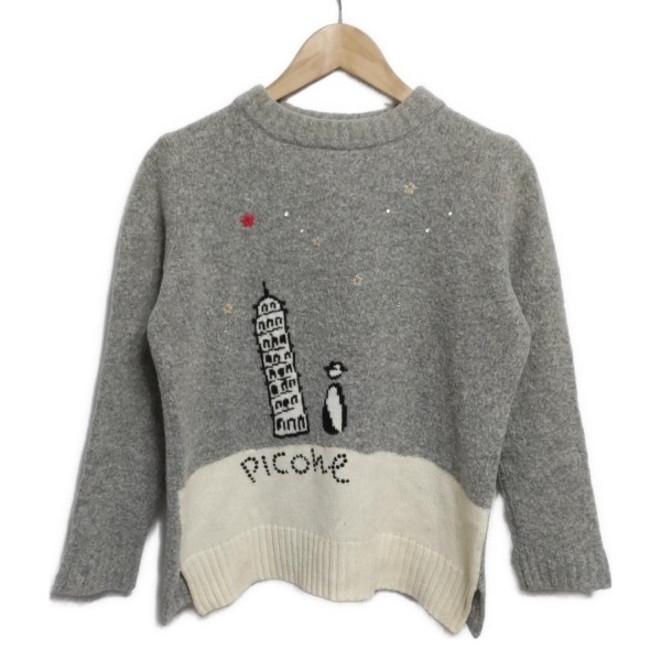 > ピッコーネ PICONE 長袖セーター/ニット サイズ40 M - ライトグレー×アイボリー×マルチ レディース クルーネック/スター(星) トップス