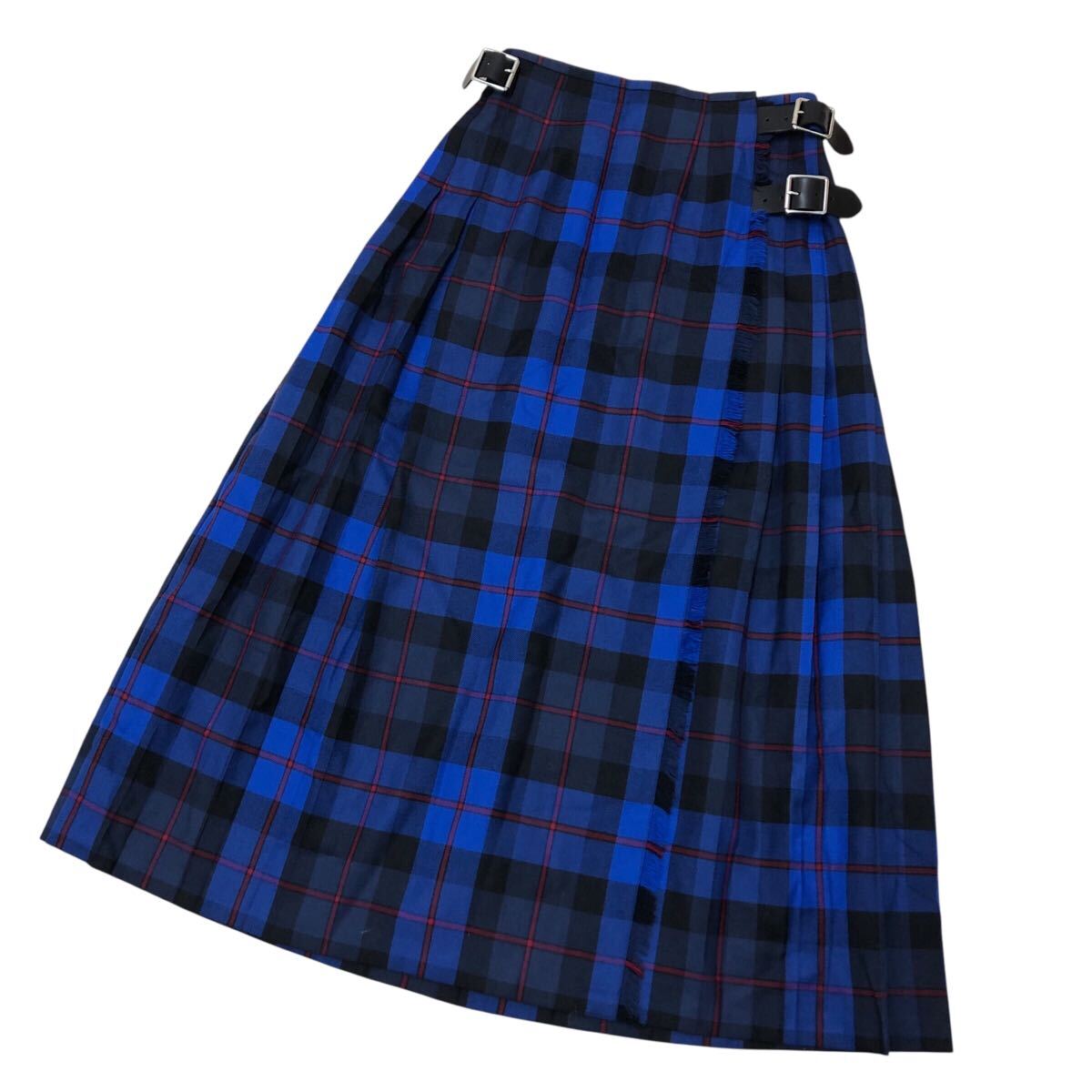 - 9K338-1 O'NEIL OF DUBLIN オニールオブダブリン 巻き スカート ベルト チェック 膝下 ミドル フレア ブルー 系 レディース 女性用 38