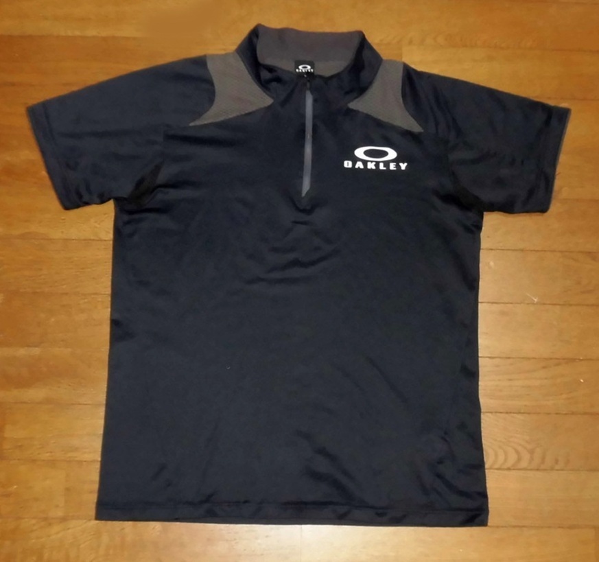 > OAKLEY オークリー ハーフジップシャツ 半袖 立襟 吸汗速乾ドライ& メッシュ 正規品 BLK-GRY L 使用少 美品/ゴルフ トレーニング スポーツ