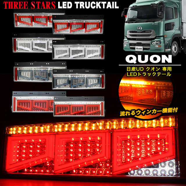 > 【ブラック】 Eマーク クオン 日産 UD 3連 角型 トラック テール シーケンシャル LED FJ5016-black