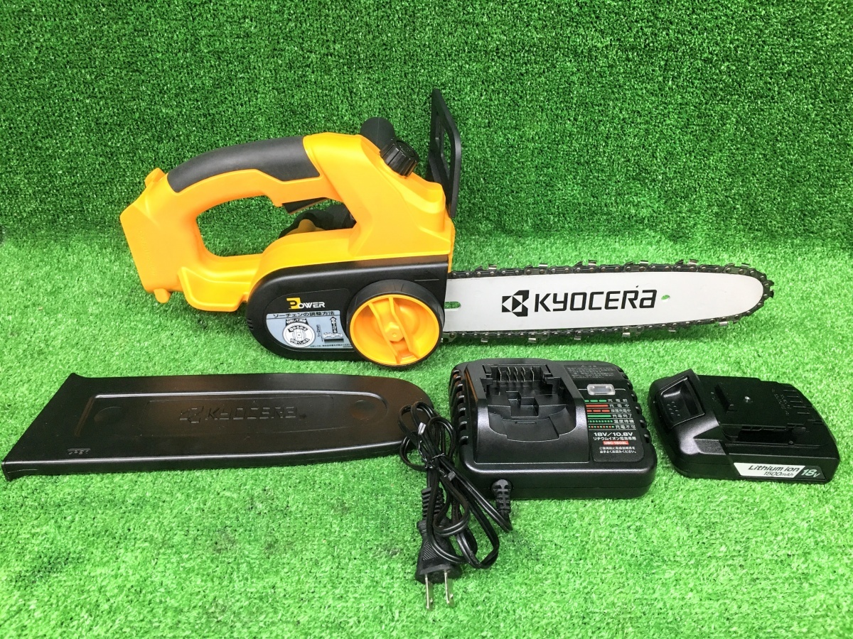 > 中古品 RYOBI リョービ Kyocera 京セラ 25cm 18V 1.5Ah 充電式チェンソー BCS-1800L1 ※本体+バッテリ1個+充電器セット