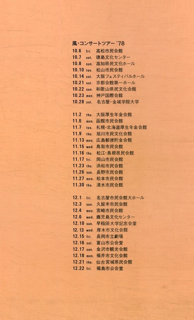 J00016253/●コンサートパンフ/風「コンサート・ツアー 78(1978年)」