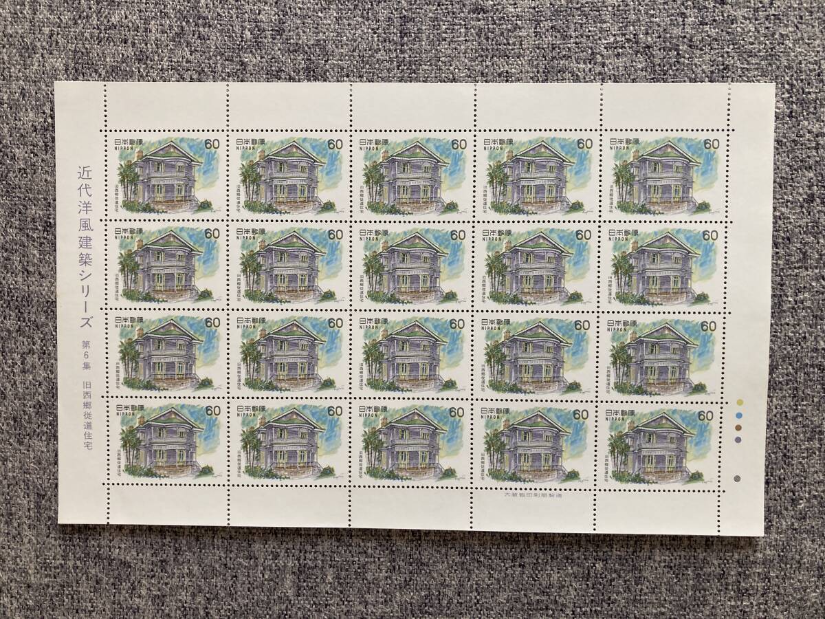 > ★未使用 近代洋風建築シリーズ 第6集 旧西郷従道住宅 旧所在 東京都 西郷山 西郷隆盛の弟 1982年 昭和57年 切手シート 60円 20枚 日本郵便