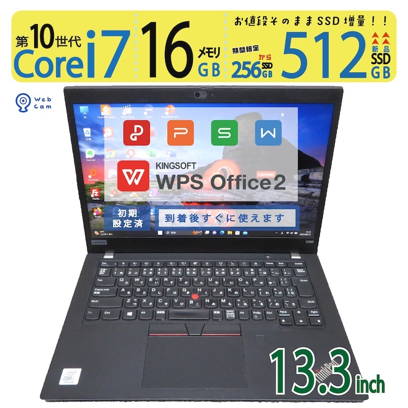 > 【超速10th i7・16GB・カメラ】◆Lenovo ThinkPad X13 Gen 1 / 13.3型 ◆ Core i7-10510U /新SSD 512GB /メモリ 16GB ◆ win11 / Office