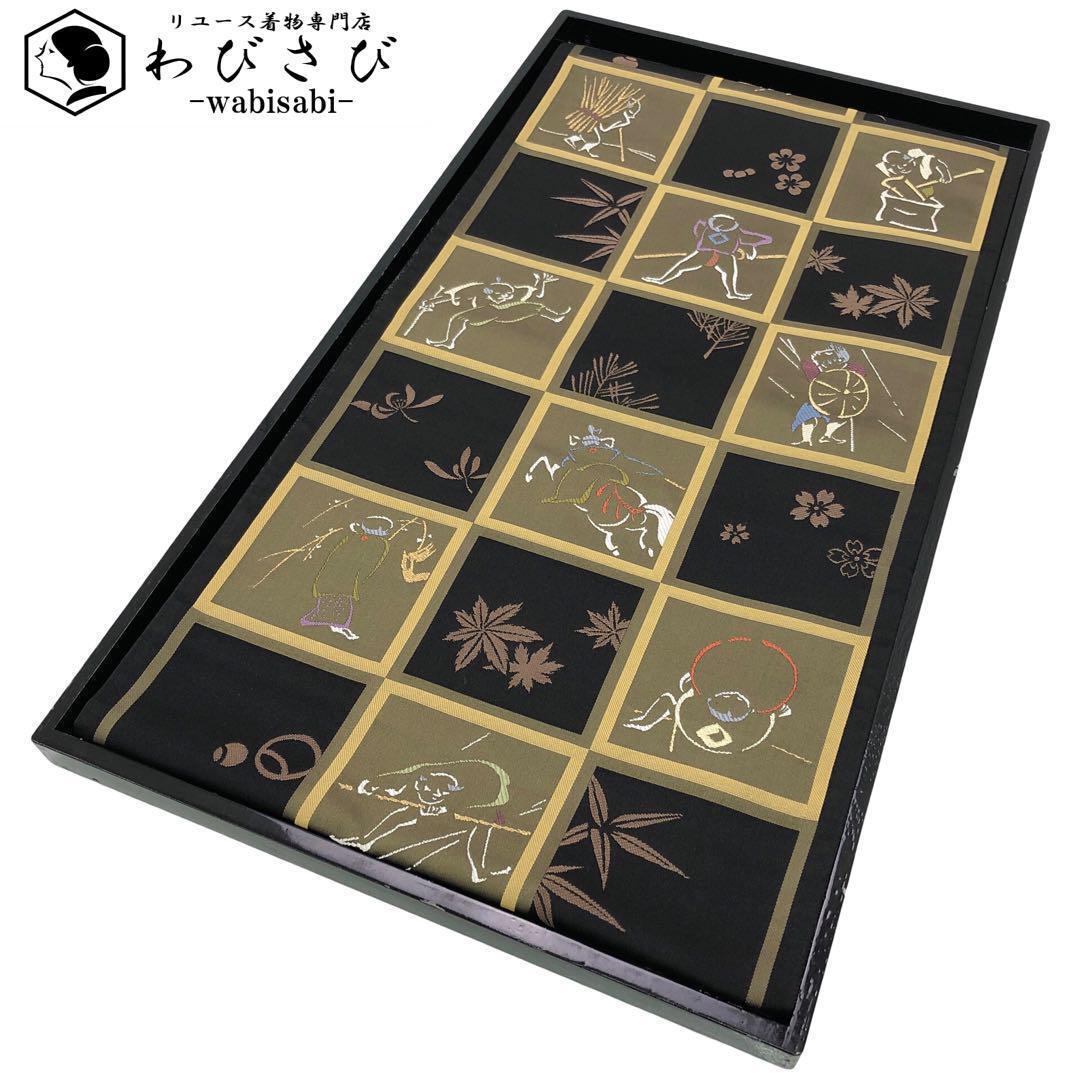 > 袋帯 西陣聚楽 逸品集 聚楽糸 格子柄に多様な柄裄 黒色 O-3408 着物 きもの kimono 和服 和装 中古 リサイクル着物 【送料無料】