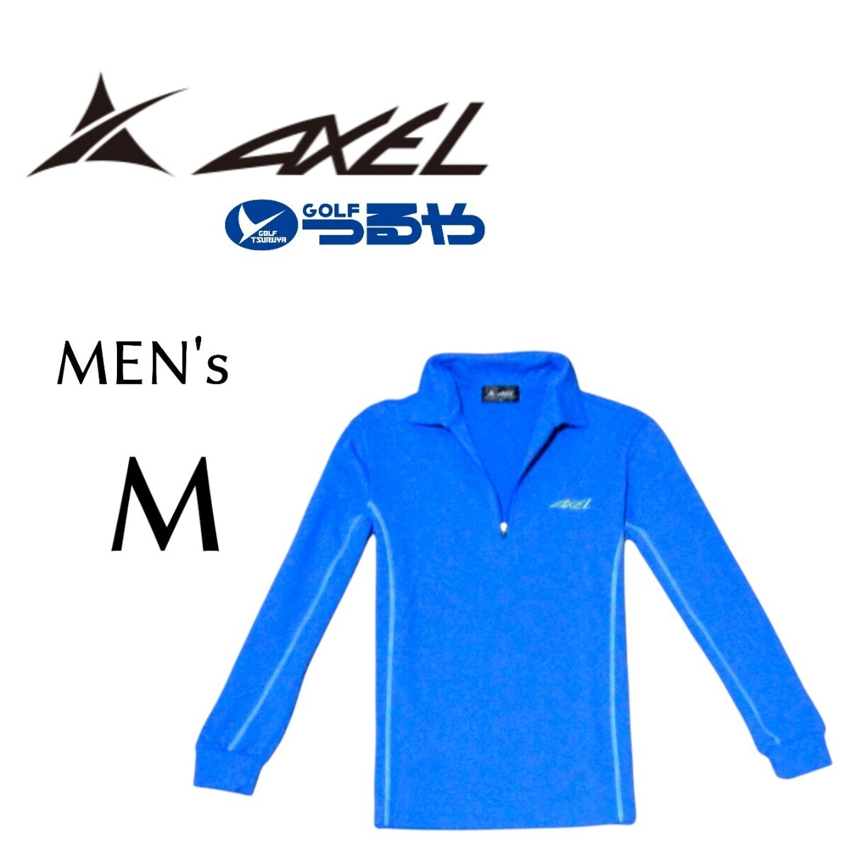 - 送料込み メンズMサイズ AXEL つるやGOLF ストレッチあり長袖シャツ 青色