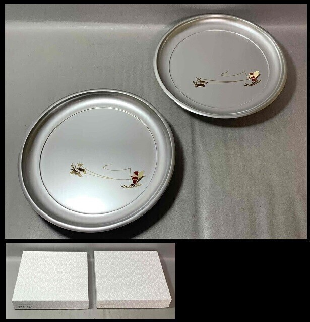 - 【藤】樹脂製 銀丸盆(2客) サンタクロース