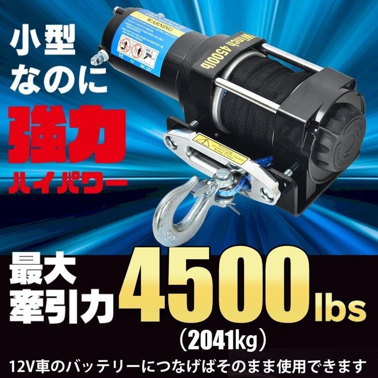- 送料無料 電動ウインチ ホイスト 12v 最大牽引 4500LBS(2041kg) 電動 ホイスト ロープタイプ 巻き上げ 強力 牽引 汎用 き sg078
