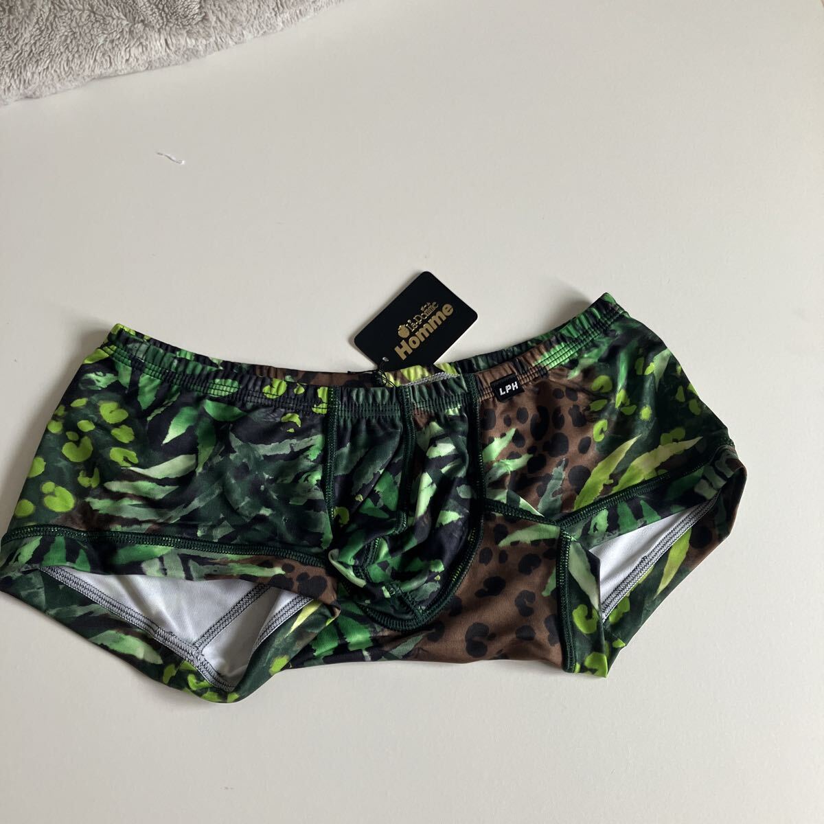 - ラポームオム メンズ La-pomme homme ジャングルプリント メンズボクサーパンツ ローライズ仕様 3Dポーチでフィット感抜群 グリーン M