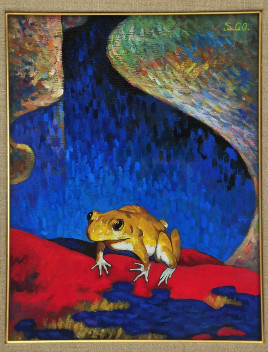 - 【真作】 呉之東 油彩画 F6号 『蛙』 額装:58×49㎝ リアリズム カエル 原画 1304001-4