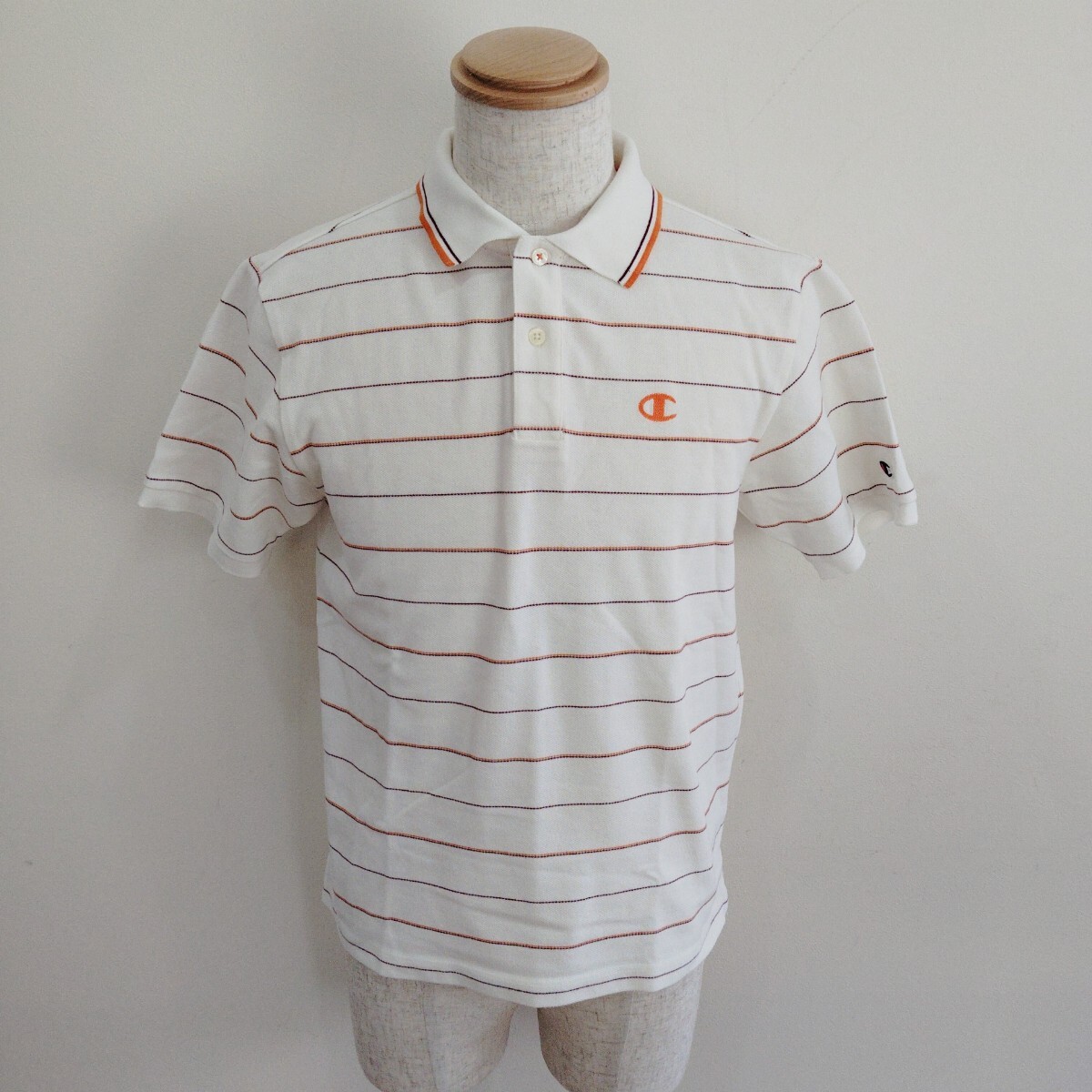 - 1003/M/Champion メンズ 半袖ポロシャツ ボーダー 白 オレンジ