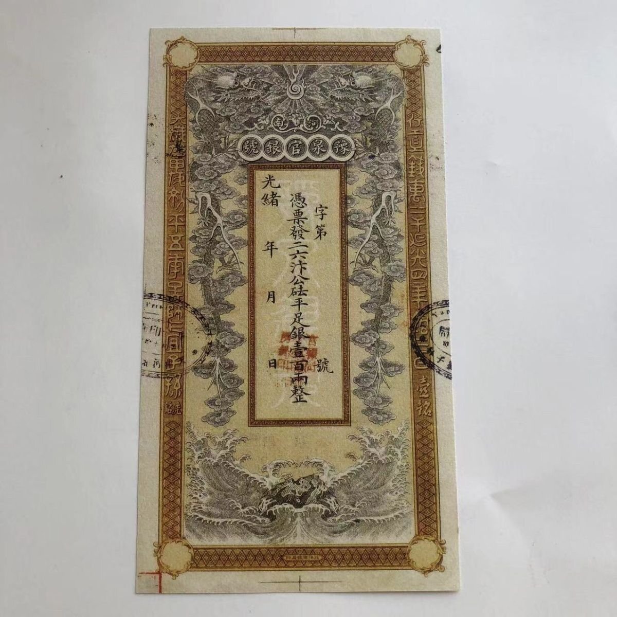 - 送料無料 中国紙幣 清朝 光緒 河南豫泉官銭局百両 美品 外国紙幣 簡易包装 郵便発送 ZH704