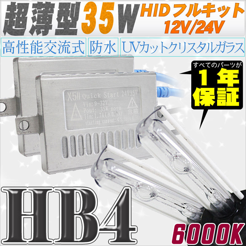 - 高性能 薄型HIDキット 35W HB4 6000K 12V/24V 【交流式バラスト&クリスタルガラスバーナー】