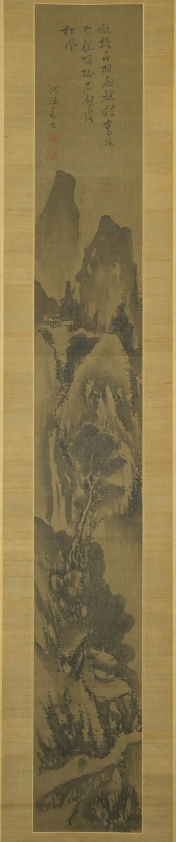 - 【真作 稀品】掛軸「河原保寿 山水図」江戸中期 書家 画家 松下烏石師事 絵画