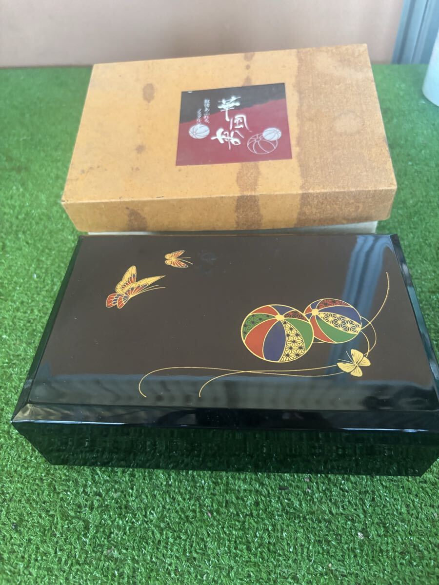- 漆器 オルゴール 黒い花柄の小物入れ ジュエリーボックス 動作確認済み