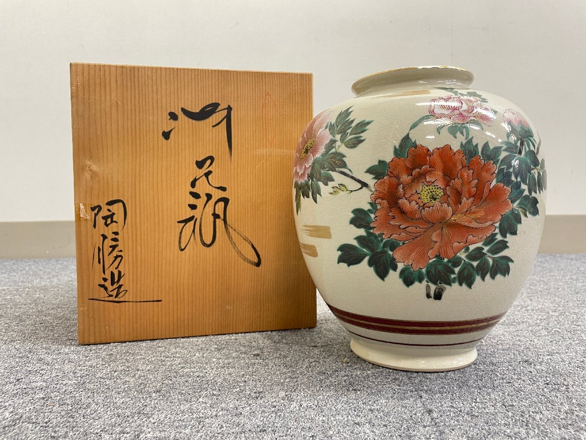> ・九谷焼 花瓶 陶勝 造 金彩色絵 牡丹 花器 花入 飾り壺 陶器 高さ24.5cm 伝統工芸