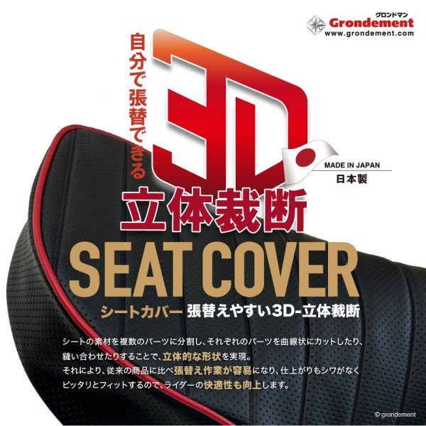 - 3D立体縫製シリーズ モンキー125 (JB02/JB03)TYPE2 スポーツシートカバー タックロールエンボス黒/パイピング赤